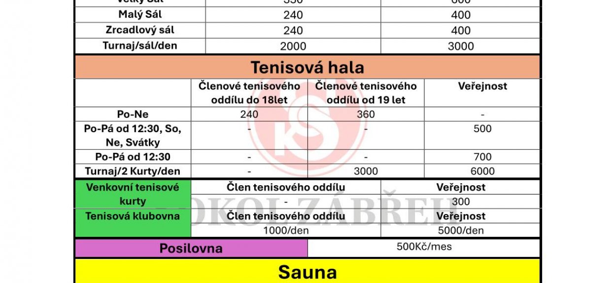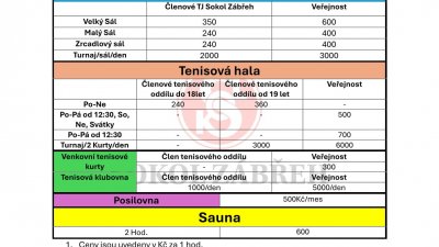 Rezervace sportovišť TJ Sokol Zábřeh od 20.2. 2024