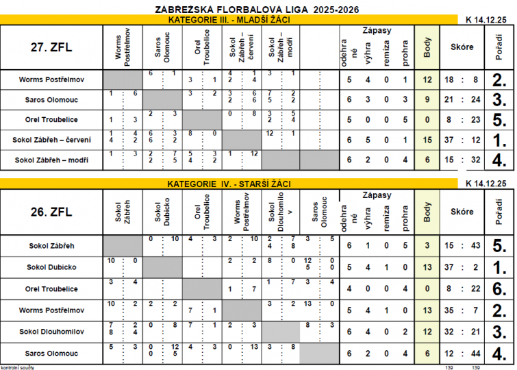 III.kategorie - mladší žáci IV.kategorie - starší žáci